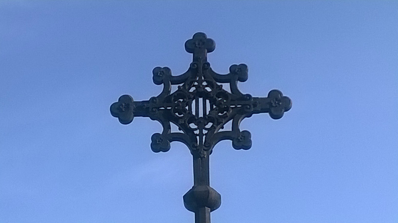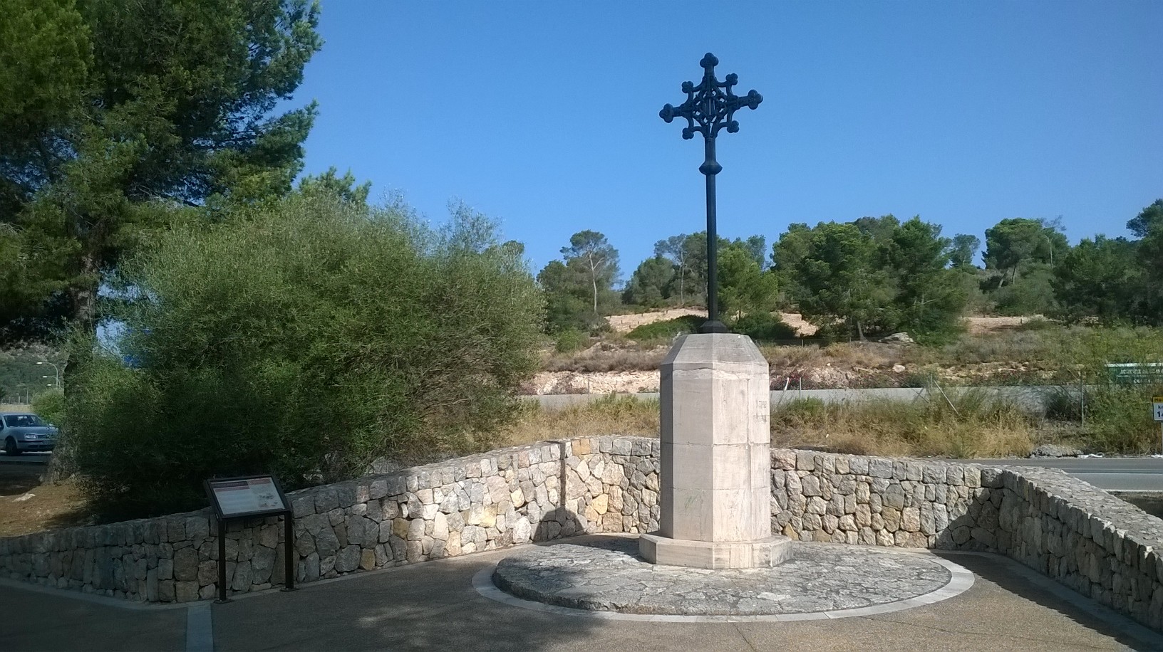 Situada al mateix passeig de Calvià, fou erigida a la darreria del segle XIX. Va ser promoguda per un grup de literats de la Renaixença encapçalats per l'escriptor Jacint Verdaguer. La creu commemora el lloc on, suposadament, varen morir els germans Ramon i Guillem Montcada, fidels cavallers del rei en Jaume, als primers fets d'armes de la conquesta de Mallorca.