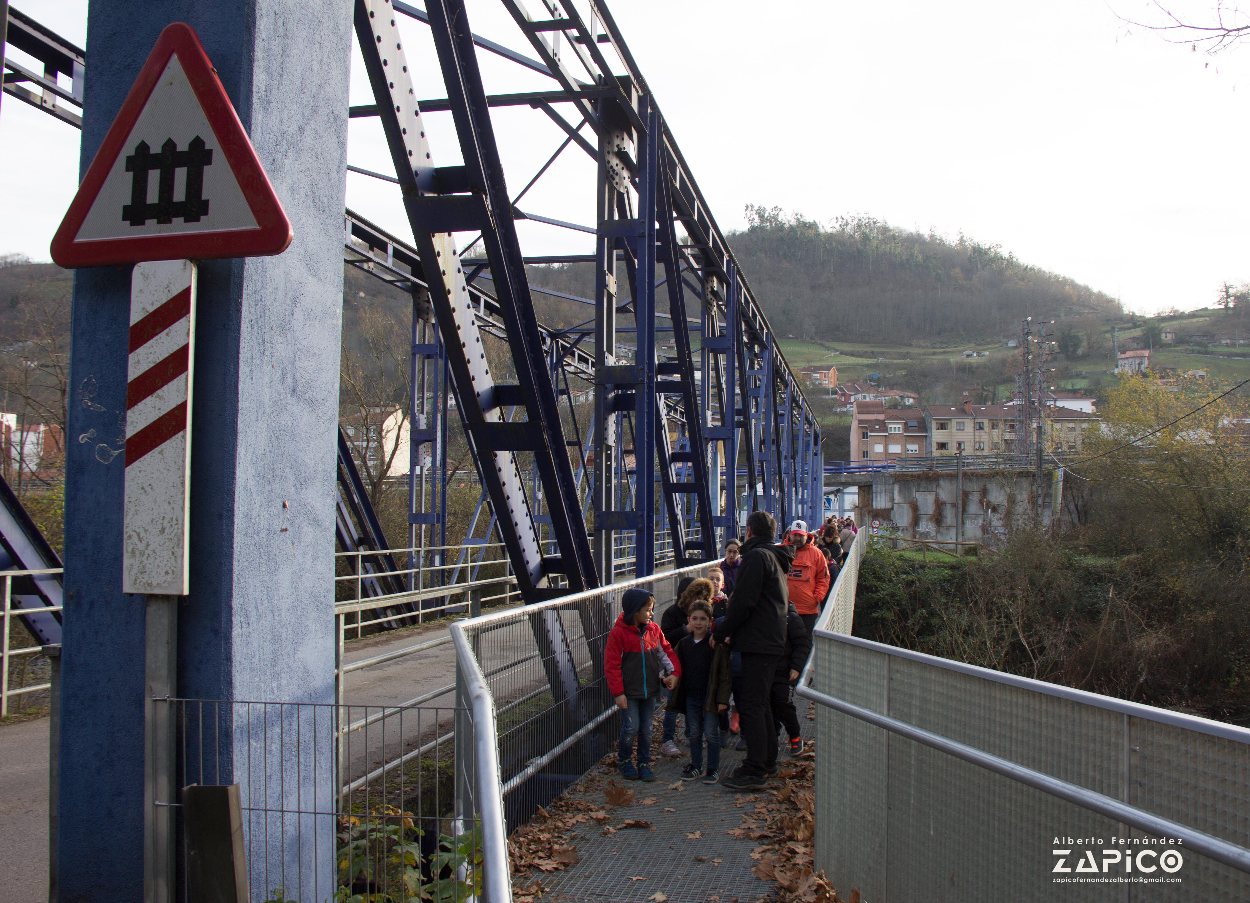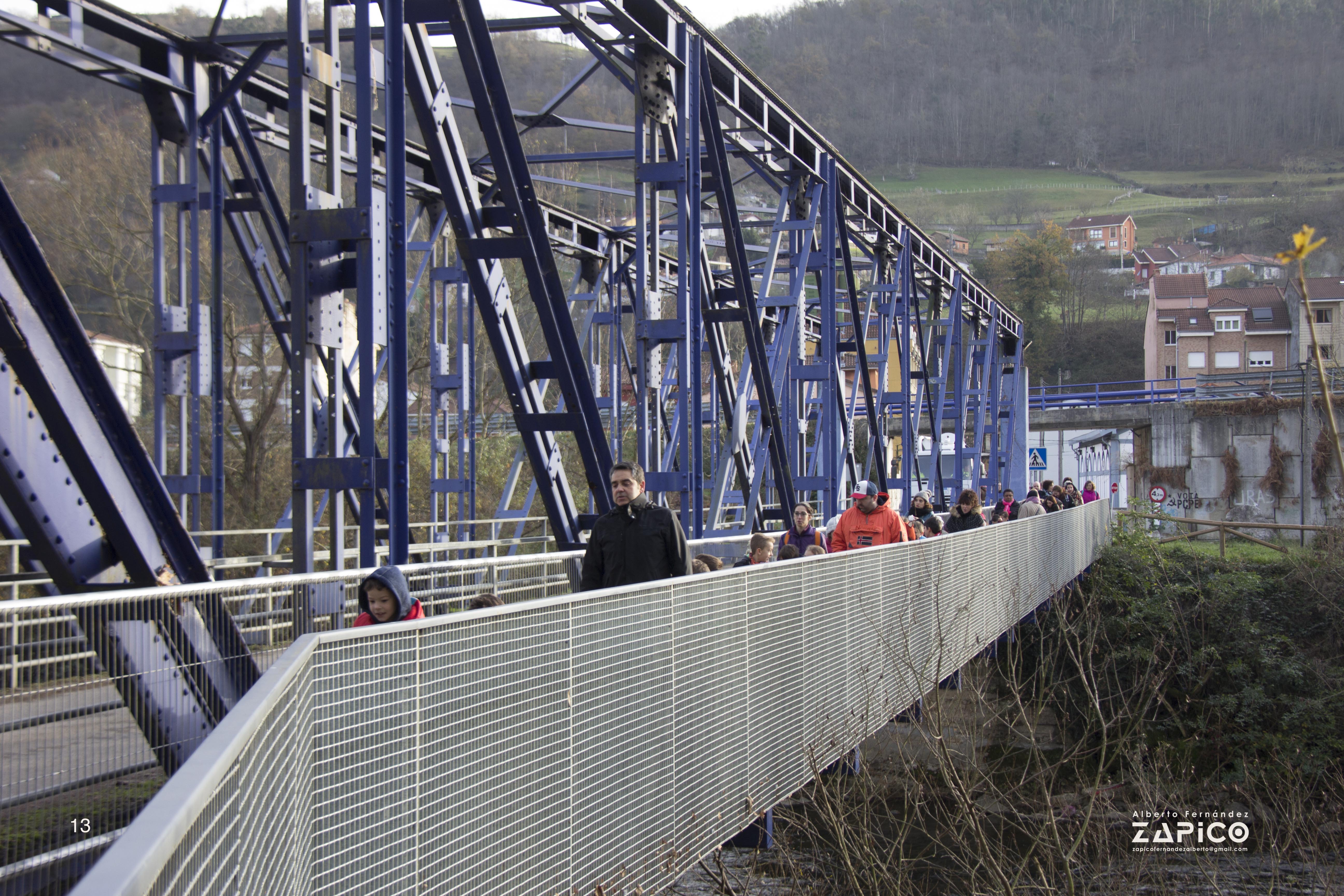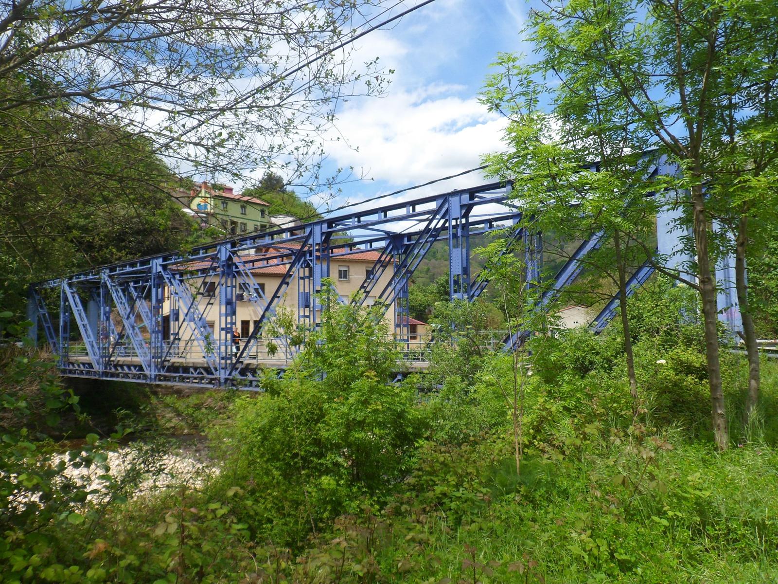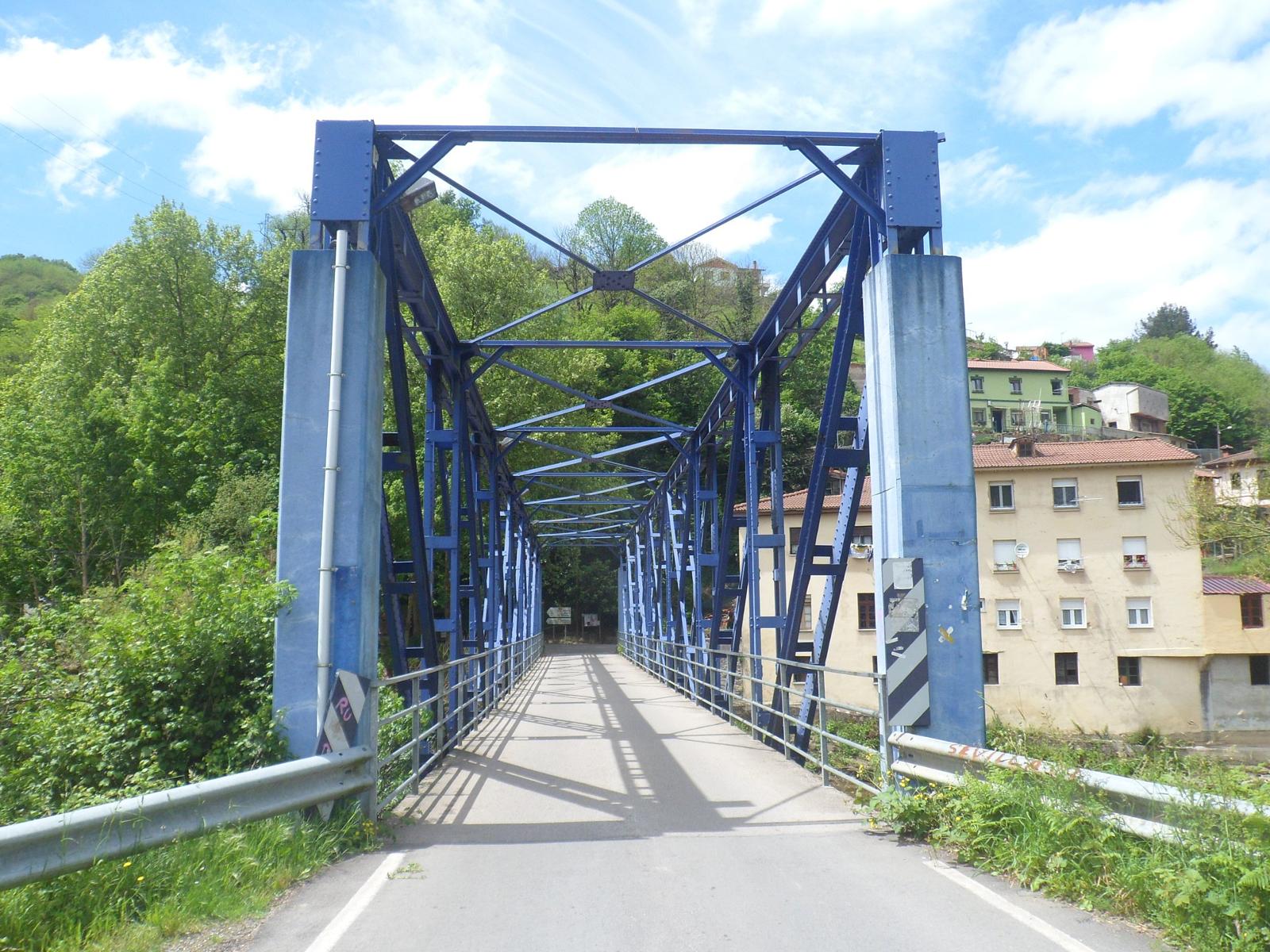 Se construyó para cruzar el río Nalón en El Entrego, para sacar el carbón por el valle de Carrocera en dirección a Lieres y llegar al puerto de El Musel, en Gijón. Este proyecto de ferrocarril no se terminó y el puente se colocó aquí, en Blimea. Es un puente de hierro roblonado de celosía muy guapo.
